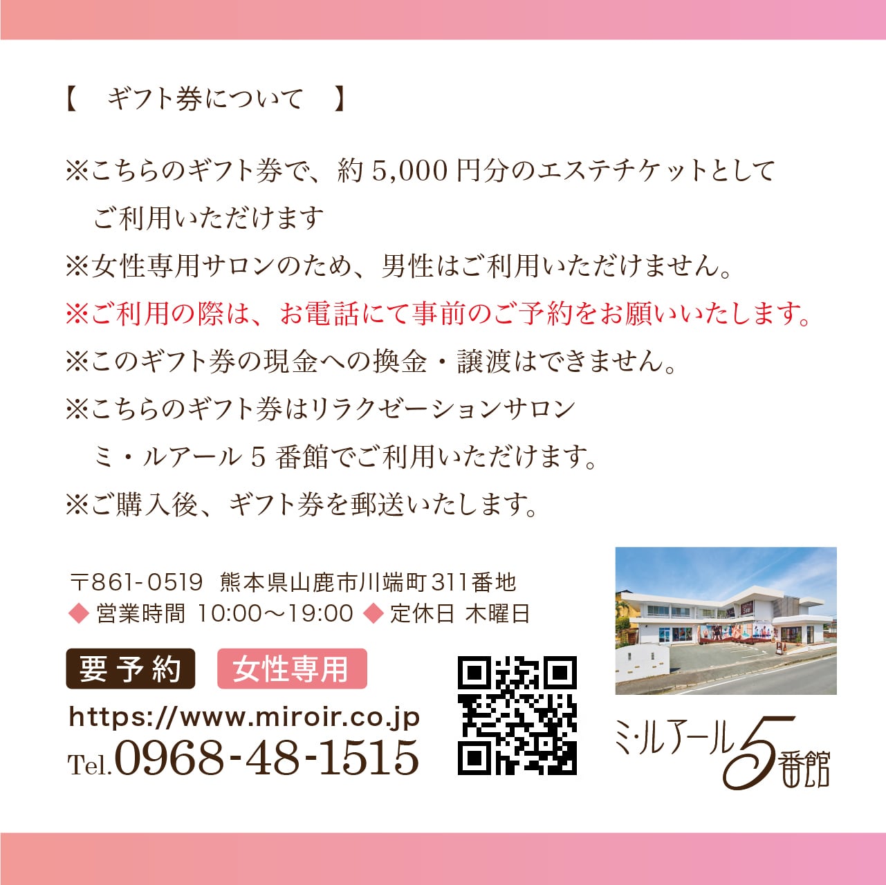 ・こちらのチケットはリラクゼーションサロン「ミ・ルアール5番館」でご利用いただけます。